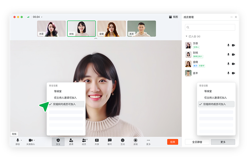 -会中秩序混乱,遇到网课攻击?安全菜单快速控场。