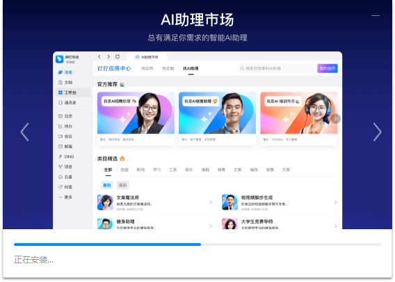 钉钉AI助理汇集了钉钉AI产品能力,帮助企业迈入智能新时代。智能文档、智能会议、智能应用等你来试,目前已有超50万家专业版和专属版客户加入,成为智能钉钉的同行者!